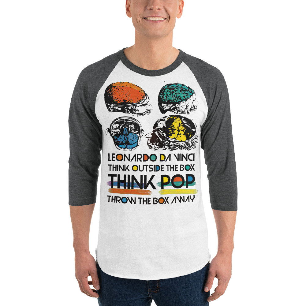Titled "Think outside the box " the Neoclassical Pop Art artwork inspired by the 16th-century Flemish anatomist, physician, Andreas Vesalius anatomical study of the brain ink drawing and comes with typography art stating "Think outside the box. Think Pop. Throw the box away!"