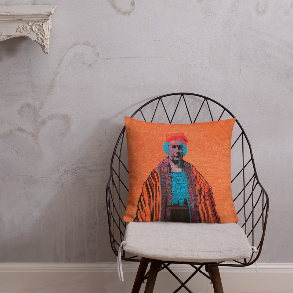Part of the Neoclassical Pop Art Old Masters decorative pillows Collection inspired by famous art masterpieces by master artists. Titled “Abstract de Madrid", Accent Pillow inspired by Rembrandt's painting "Self-Portrait with Two Circles", created 1661, currently located at the English Heritage, Kenwood House, London.